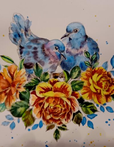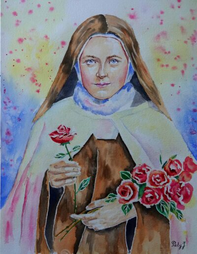 Mes aquarelles Je vous présente ici mes créations à l’aquarelle dont j’aime la légèreté et la transparence . Découvrir Sainte Thérèse de Lisieux Le Loup Mal aimé Paty la chauve-souris Petit chat aux coquelicots Lièvre de Pâques Chasse aux oeufs Oeufs de Pâques Petit Lièvre Notre sauveur Soeur Emmanuelle Mère Térésa Pape François Cheval blanc Cheval roux Deux chevaux d’amour Regard du roi de la jungle Abbaye des Châteliers île de Ré Ars en Ré île de Ré La Flotte en Ré La vague Plage de vik Plage du sud Cairn face à la mer Fort Boyard Champ de coquelicots Paysage provençal champ de lavandes Barque Crabe 20230917_144532 Bord de mer Beau Goéland Pont d’Eloie Ferme sous la neige Forêt enchantée Chat dans la neige Chouette sous la neige Hiver en forêt Paysage de neige Stella Alf Chien de Noël Cheval de Noël Chat de Noël Chat de Noël Chat de Noël Bonhomme de neige Hérisson de Noël Père Noël Douceur féline Panier de cerises Pomme Bol de cerises Prunes Prunes Délicieuses cerises Colibri 2Coquelicots de lumière Belles Anémones Abeille mellifère Araignée Coccinelle à 7 points Mont Saint Michel les châtaignes Crabe Scorpion Gédéon Cheval Belle famille d’Ouettes d’Egypte Border collie Cocker anglais Westie Samoyède Golden retriever Pépita Jaguar Rouge-gorge Mésange bleue Tigre Tigre Notre cousin Girafe Jaguar Les Big fives Le roi de la Jungle Éléphant d’afrique Hippopotame Grand Koudou Famille bovine Coq Aigle Pygargue à tête blanche Rassemblement de moineaux Martin pêcheur Hibou Mésange noire Carte d’anniversaire Martin pêcheur d’europe Deux guêpiers Oiseaux amoureux Cygnes de l’étang des forges Rouge-gorge Chat Helly Elphy n°2 Oiseaux du paradis Roses trèmières Narcisses Pré fleuri Roses n°2 Roselière de l’étang des forges Offemont En provence Coucher de soleil en cammargue Lumière n°1 Petite reinette Grand porte queue Roses L’espérance Papillons petites Tortues Le bonheur Roses n°4 Montagne eneigée Lumière n°2 Le bonheur 2 Deux coccinelles Duo de coccinelles La légèreté La fragilité La confiance Rouge-gorge Iris en ré Printemps Fleurs de pommier Roses n°3 Iris n°2 Iris n°1 Deux escargots Amanita muscaria Coquelicot de tersanne Narcisses Fleurs éclatantes Coquelicot radieux Champ de coquelicots n°3 Champ de coquelicots n°2 Champ de coquelicot n°3 Bouquet de printemps Cerises Poires Oranges Cerises n°3 Trio de cerises Cerises n°1 Cerises n°2 Fraises appétissantes Galaxie Aurore boréale Astronomia 2 Aurore 2 Astronomia 3 Astronomia 4 Astronomia Djeff